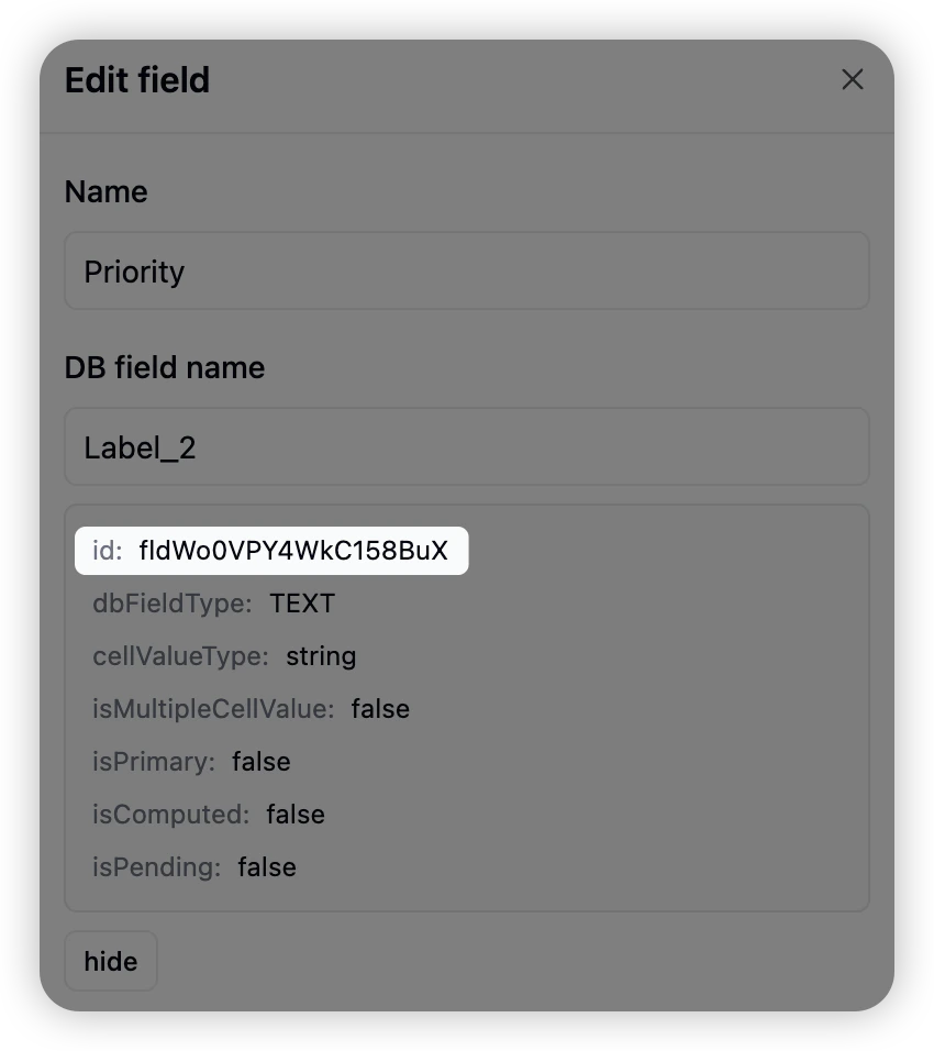 Click on the target table and copy the string starting with ‘tbl’ from the URL, example:tblXXXXXXXXXX
