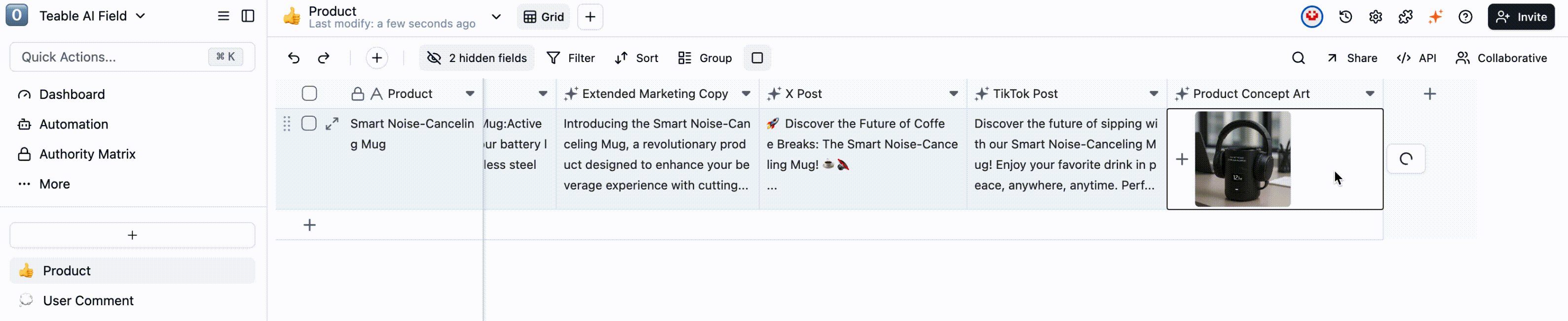 Teable’s AI Fields, AI Conversation, and AI Reporting features work in tandem to take an initial product idea and seamlessly power it through content creation, global marketing, and market analysis. The process culminates in a data-driven insights report ready for the boardroom, creating a true end-to-end workflow from idea to intelligent decision.