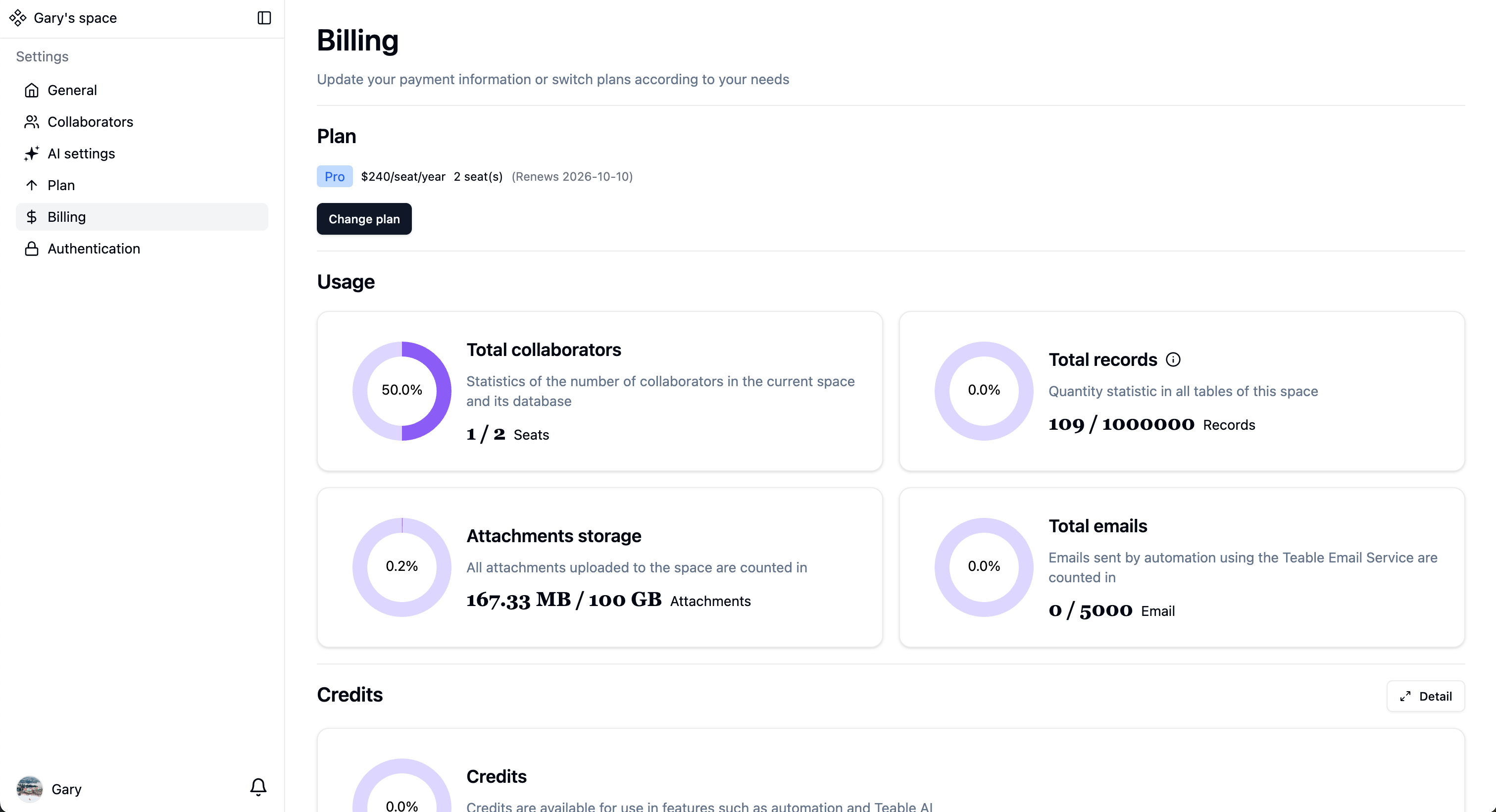 Billing is only available in the Cloud version of Teable. Self-hosted users should refer to the License Activation documentation.