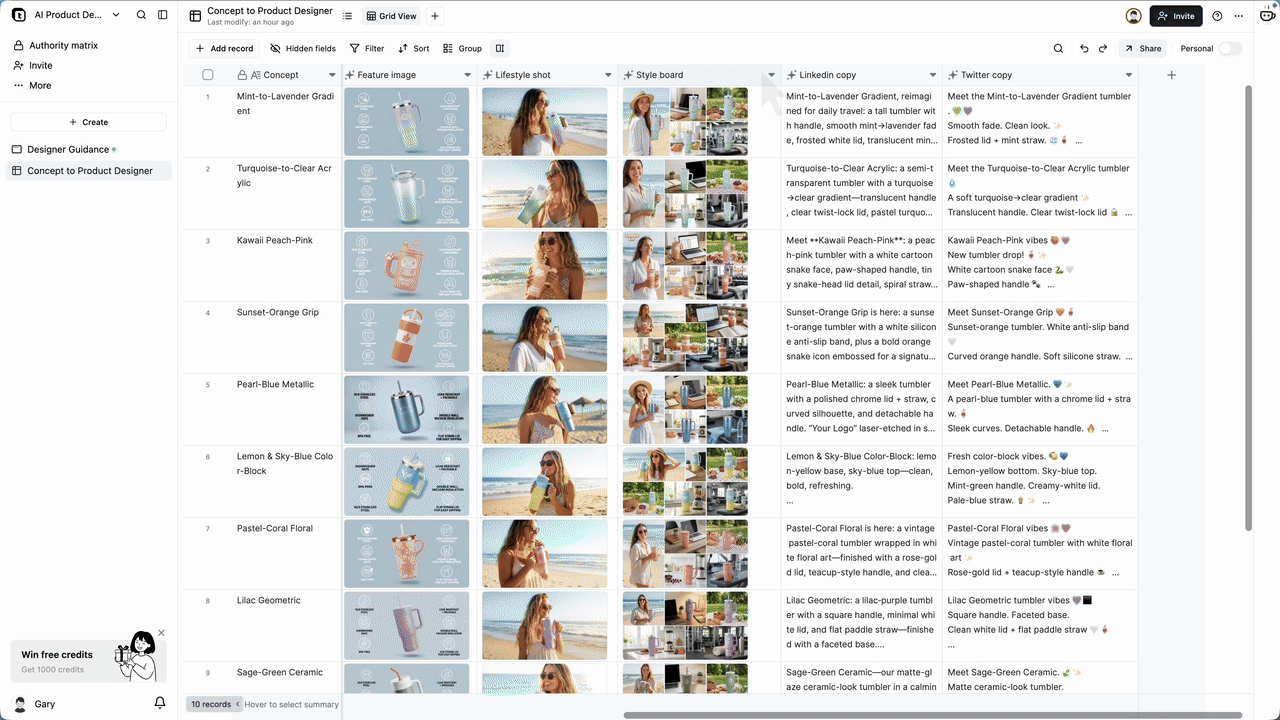 Low on credits? Share on X or LinkedIn and get 1,000 free credits instantly — every week. Join from the bottom-left in Teable.
