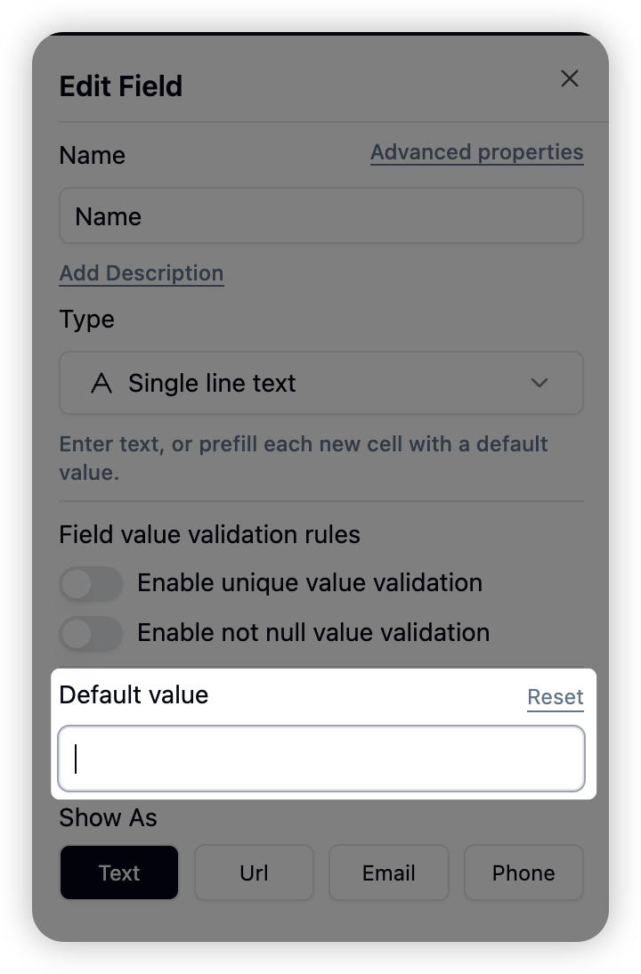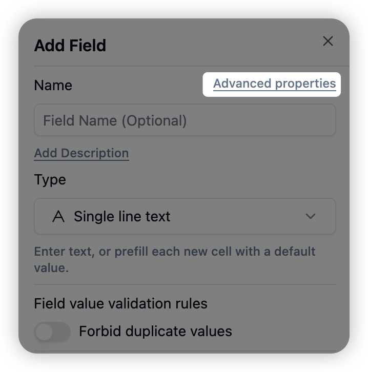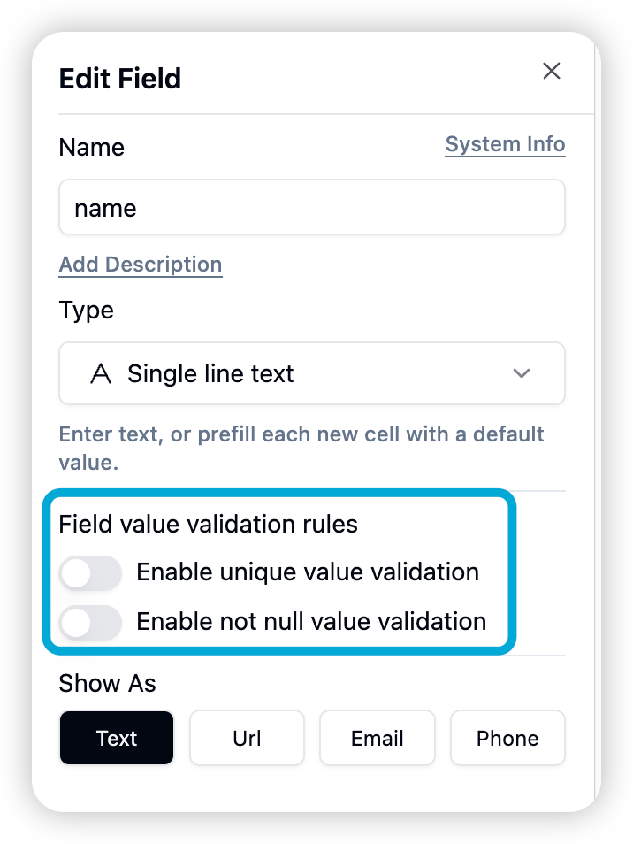 - Unique Value Verification Constraint: Added field unique value verification function to ensure that the field value is unique in the entire table.