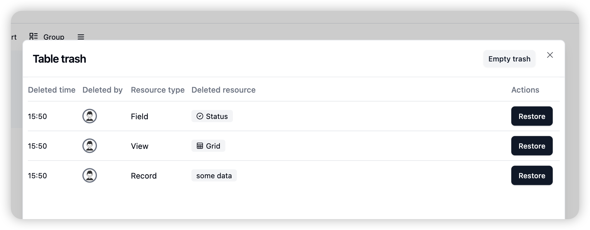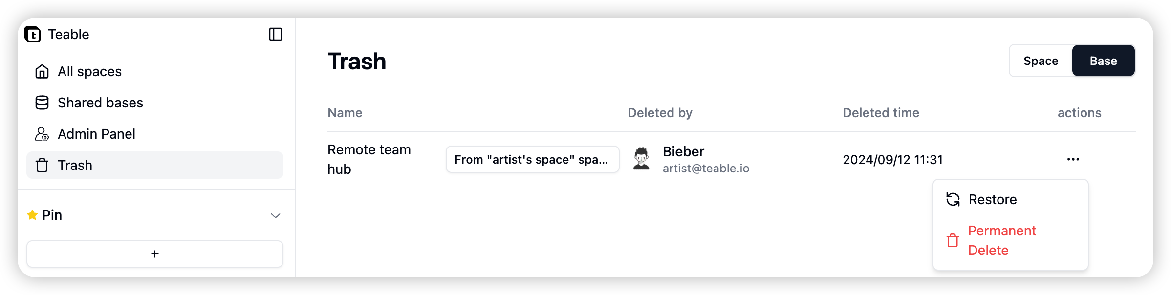 - Permanent Delete: Added permanent delete functionality for bases and tables
