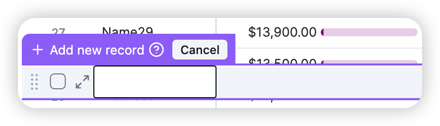 Allow users to fill in complete row information before creating records to improve data completeness