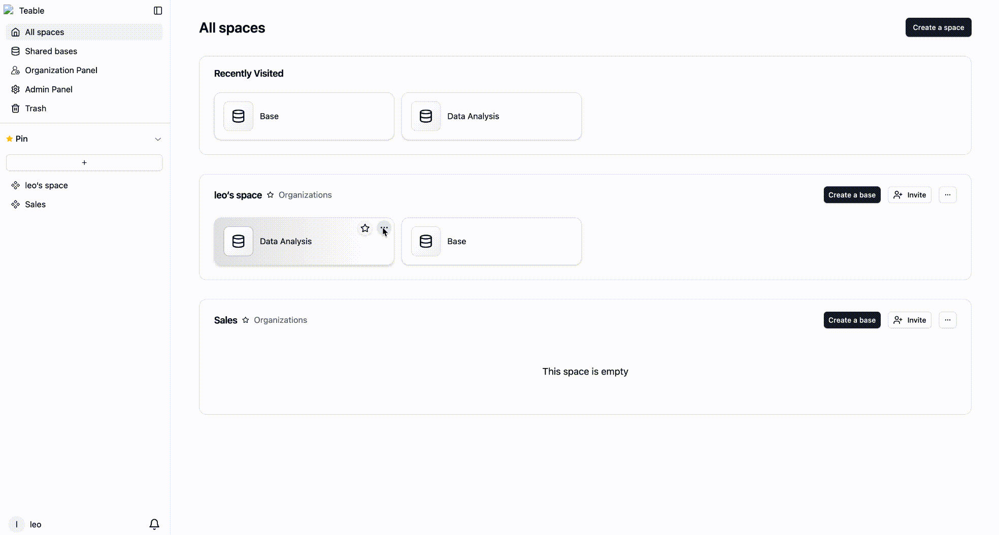 Base & Workspace Management: Support for moving bases between spaces and enhanced workspace organization