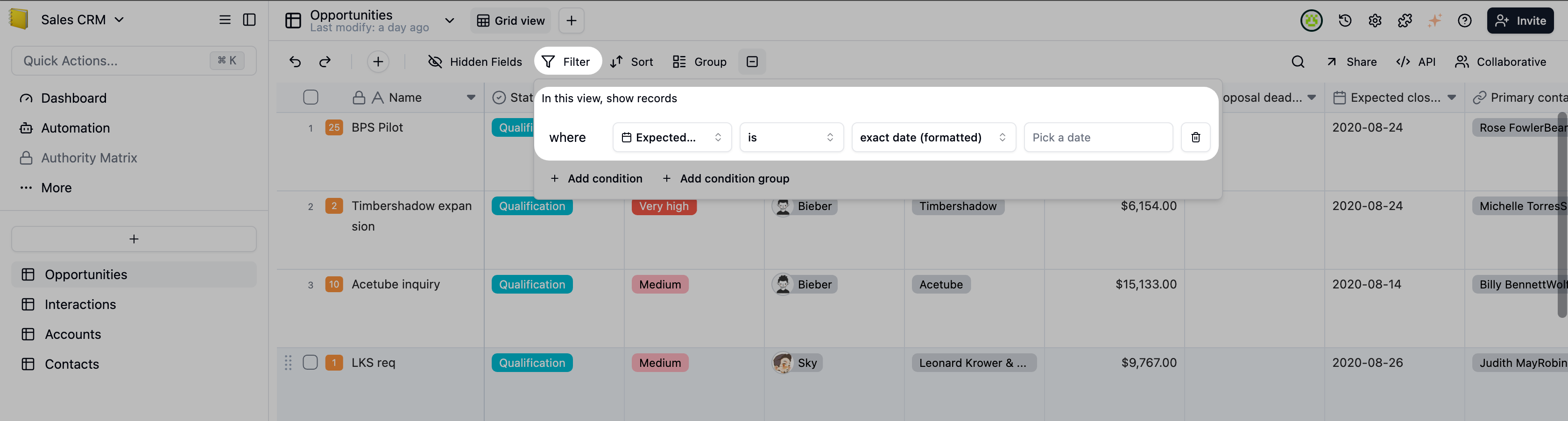- Select view/configure filter conditions