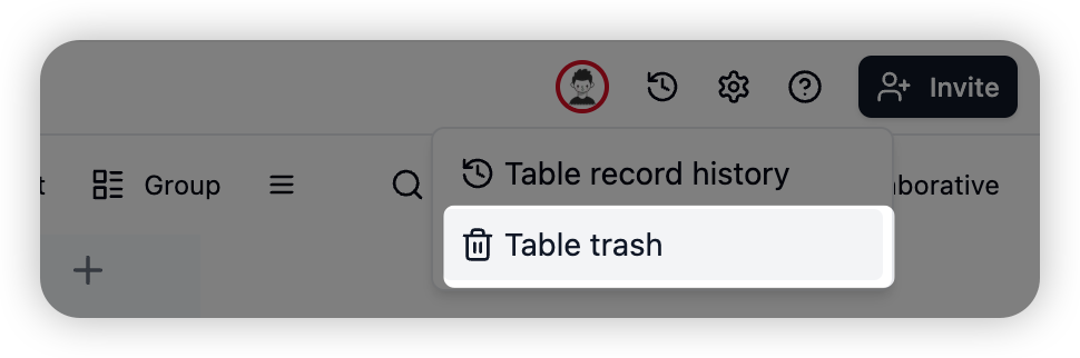 View the record modification history of the entire table in the upper right corner of the table.